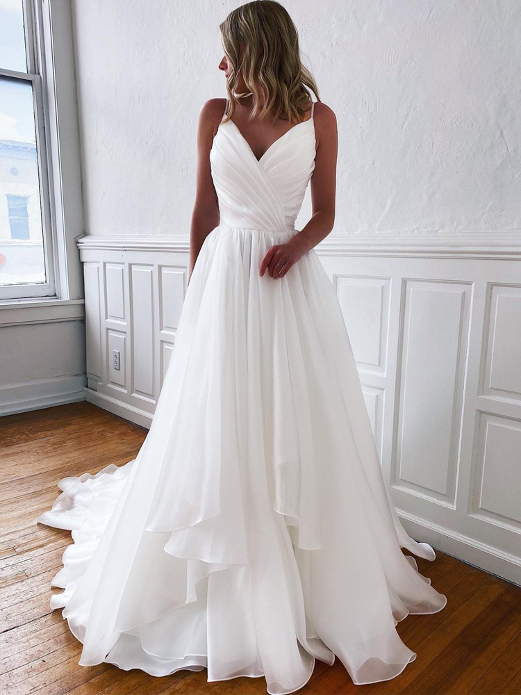 Charming A Line V Neck Spaghetti Straps CHiffon Long Wedding Dresses