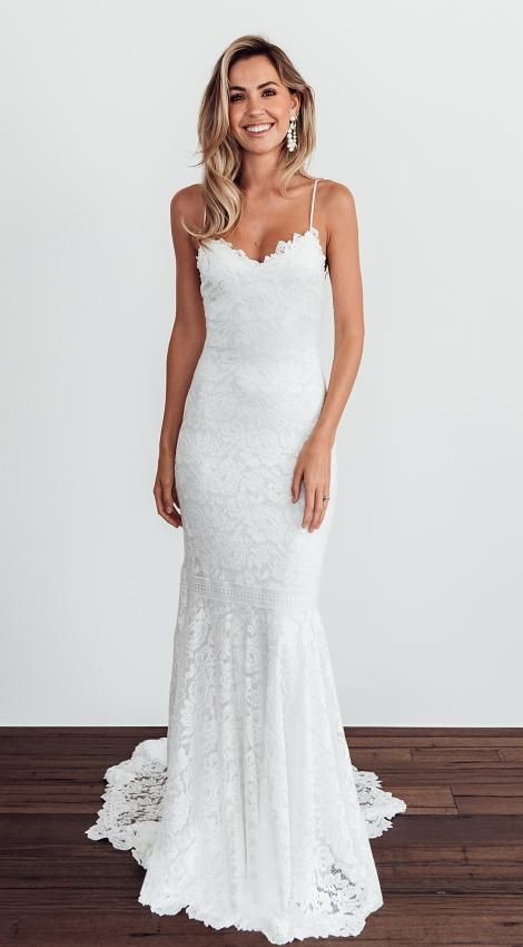Elegant Floral Lace Lace White Bridal Dresses with Thin Straps Wedding Dresses 2021