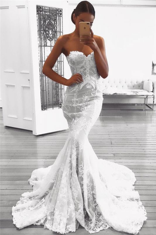Features: Sweetheart Mermaid Lace Appliques Wedding Dresses 2020