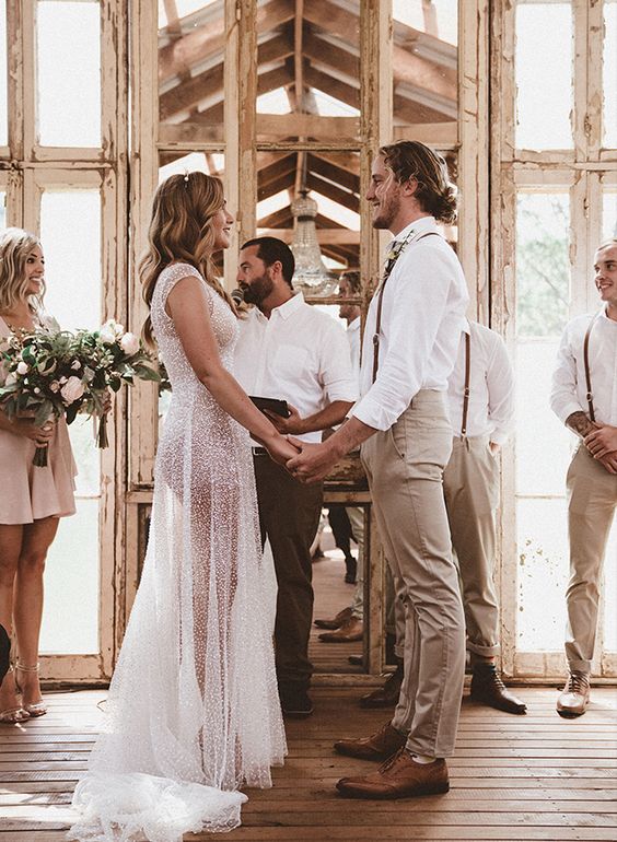 Sparkly A-line V Neck Open Back Sequin Outdoors Wedding Dress