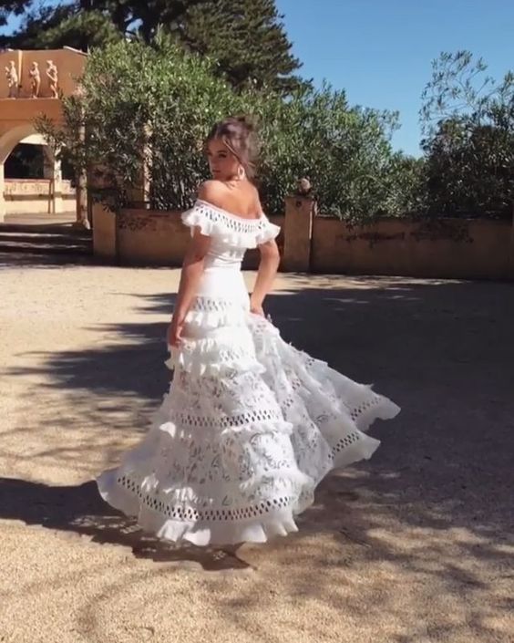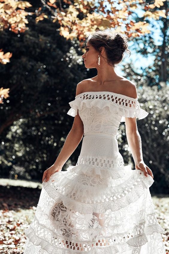 Sheath Off the Shoulder White Lace Vintage Wedding Dress