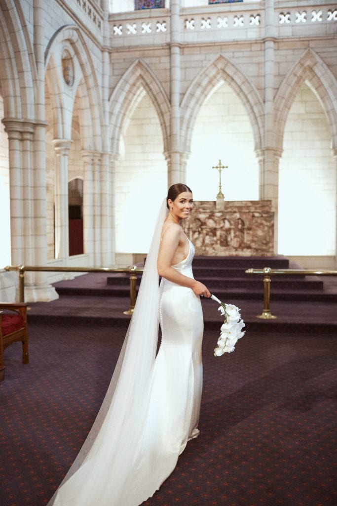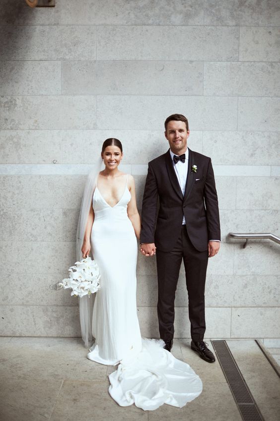 Sexy Mermaid Deep V Neck Backless White Satin Wedding Dress with Train