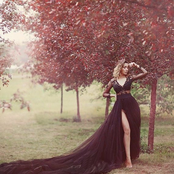 Features:Black Tulle Wedding Dress