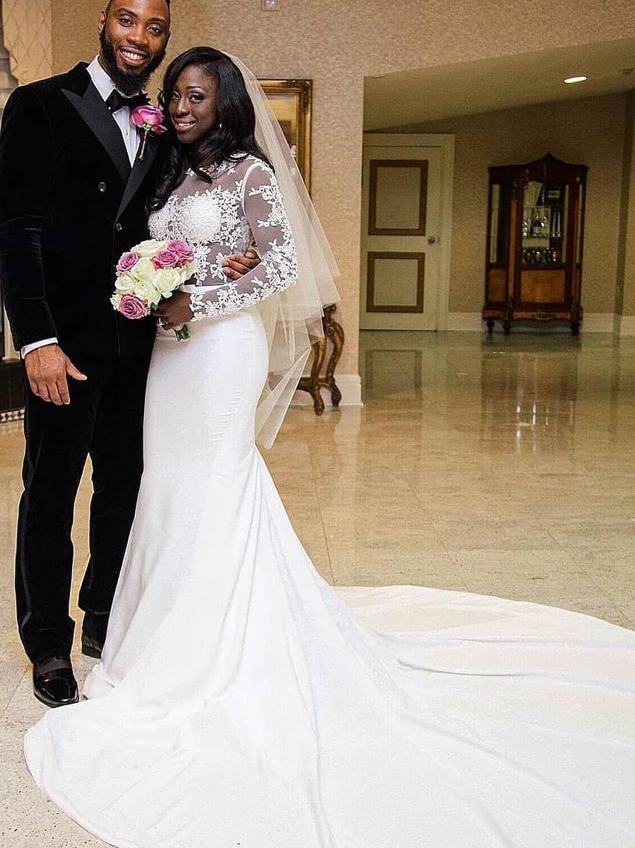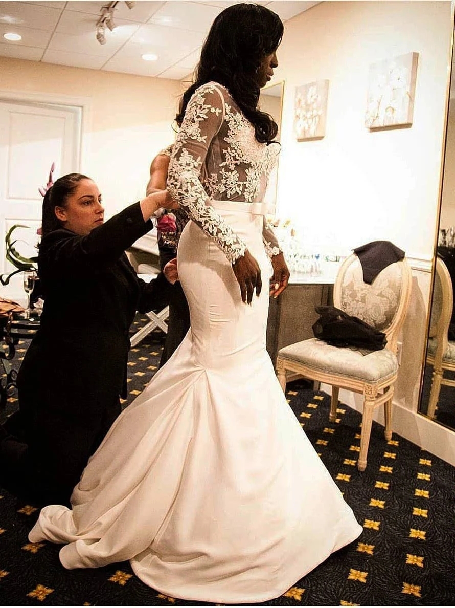 Mermaid Long Sleeve Wedding Dresses Ivory Beauty Bridal Gowns