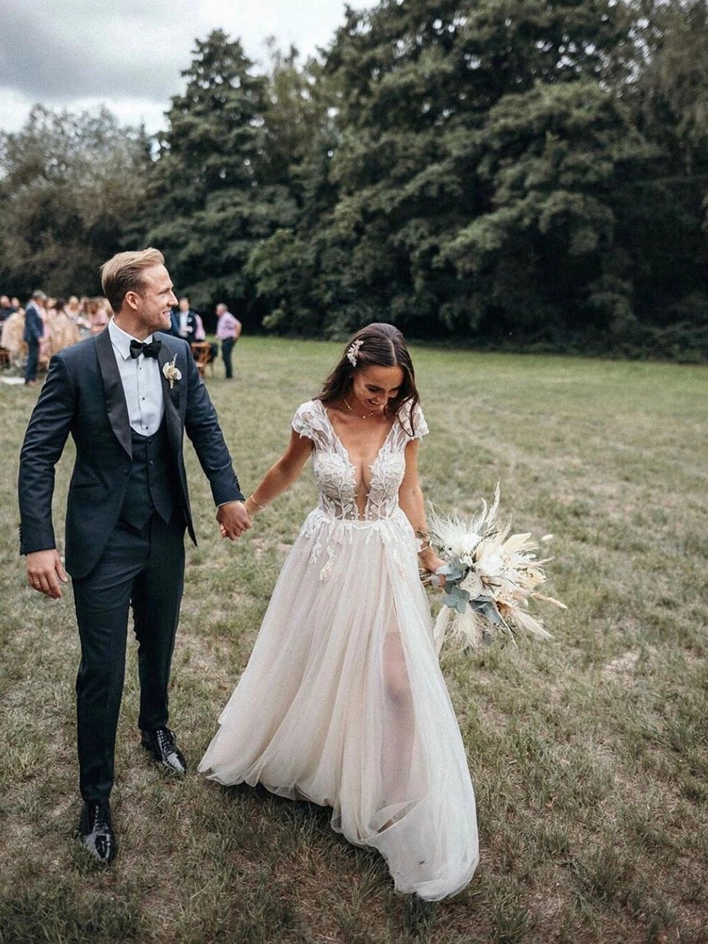 Features:Cap Sleeve Tulle Lace Wedding Dress