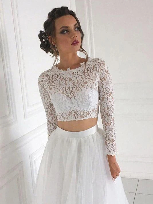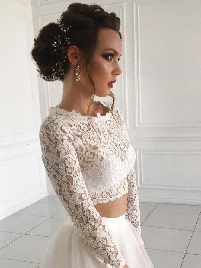 Features:Two Piece Long Sleeve Lace Wedding Dress