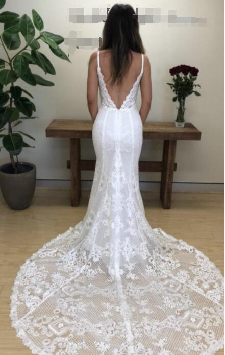 Mermaid Lace V Neck Wedding Dress Bridal Gown