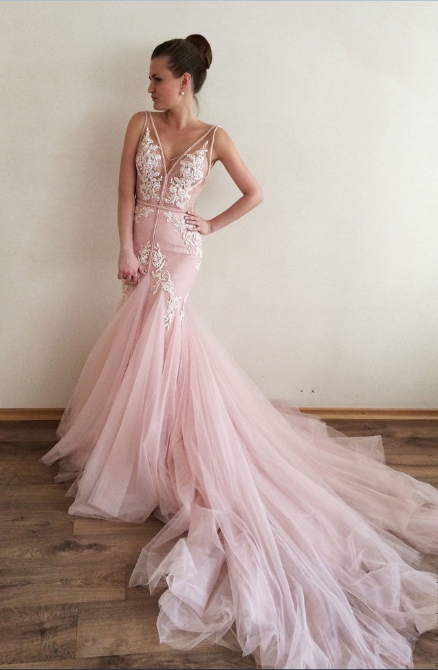 Features:Mermaid Pink Tulle Lace Wedding Dresses 2021