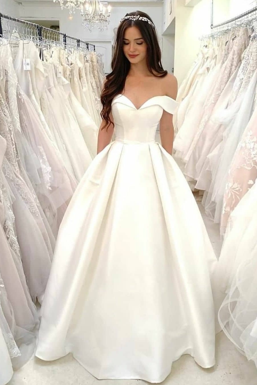 Features:Elegant Satin Off the Shoulder Wedding Dresses