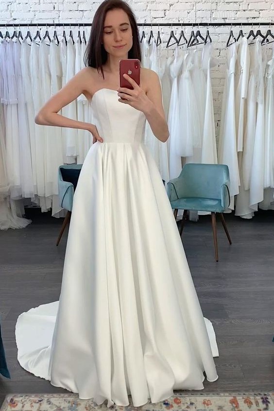 Features:Strapless Satin Simple Wedding Dresses