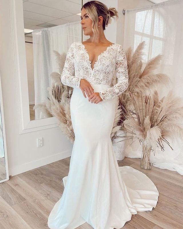 Elegant Mermaid V Neck Long Sleeve Wedding Dresses