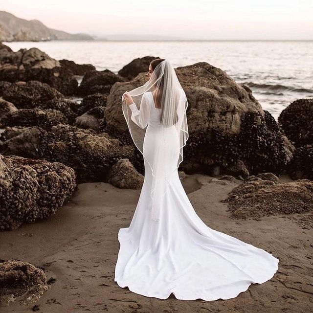 Elegant Mermaid Square Neck Long Sleeve White Wedding Dresses