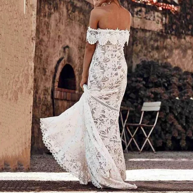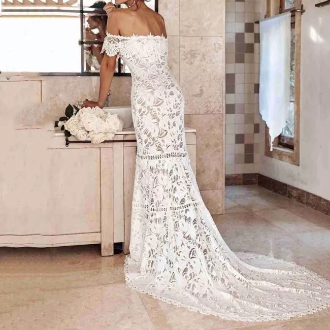 Features: Elegant Off the Shoulder Boho Lace Wedding Bride Dresses