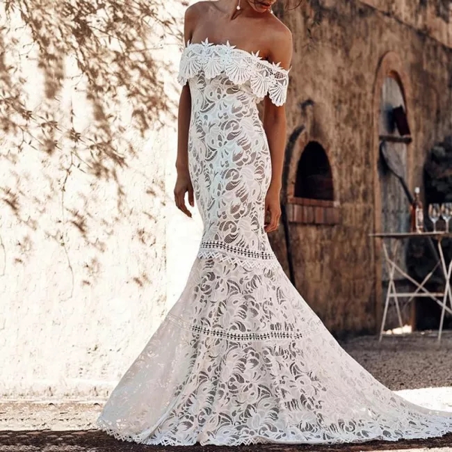 Boho Mermaid Off the Shoulder Lace Wedding Dresses