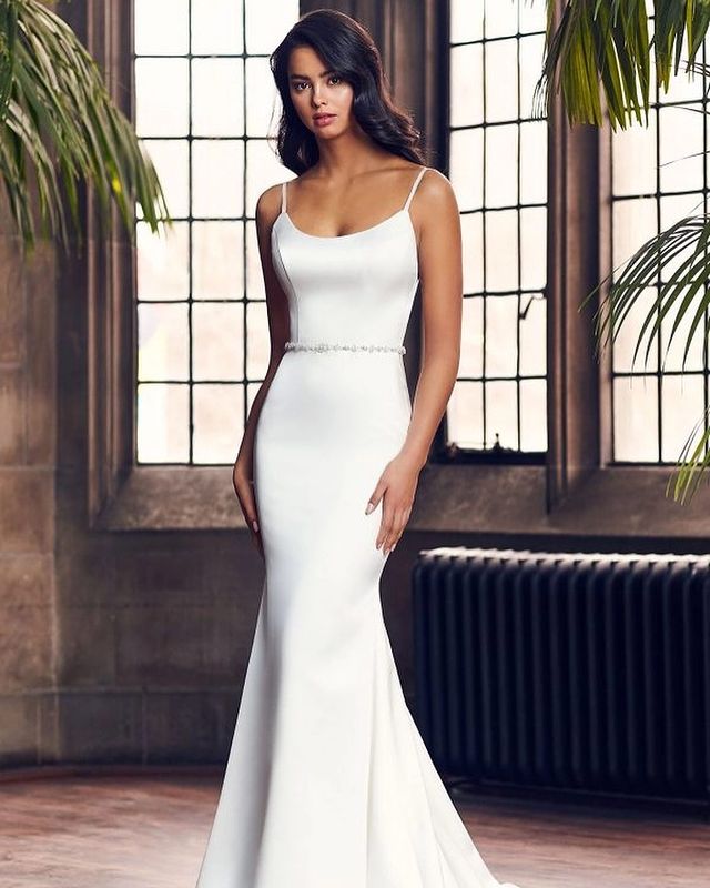 Charming Mermaid Scoop Neck White Satin Wedding Dresses
