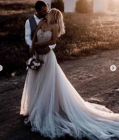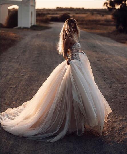 Gorgeous A-Line Sweetheart Ivory Tulle Wedding Dresses with Beading
