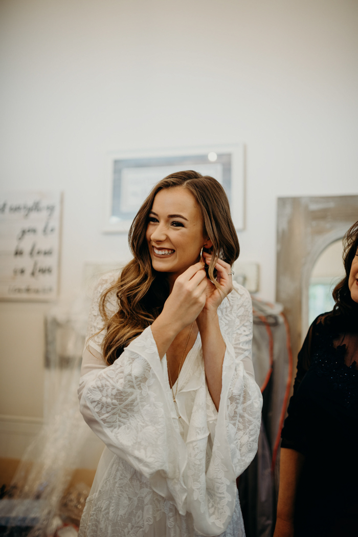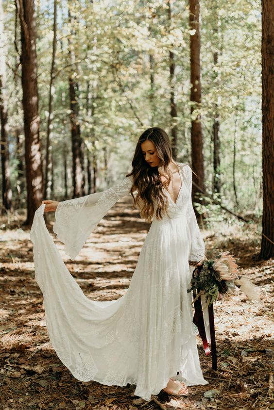 Boho A-Line V Neck Long Sleeves White Lace Wedding Dresses