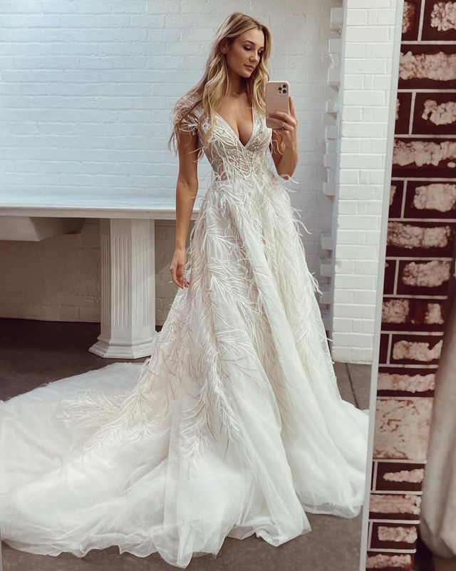 Modest A-Line V Neck Cap Sleeves Tulle Wedding Dresses