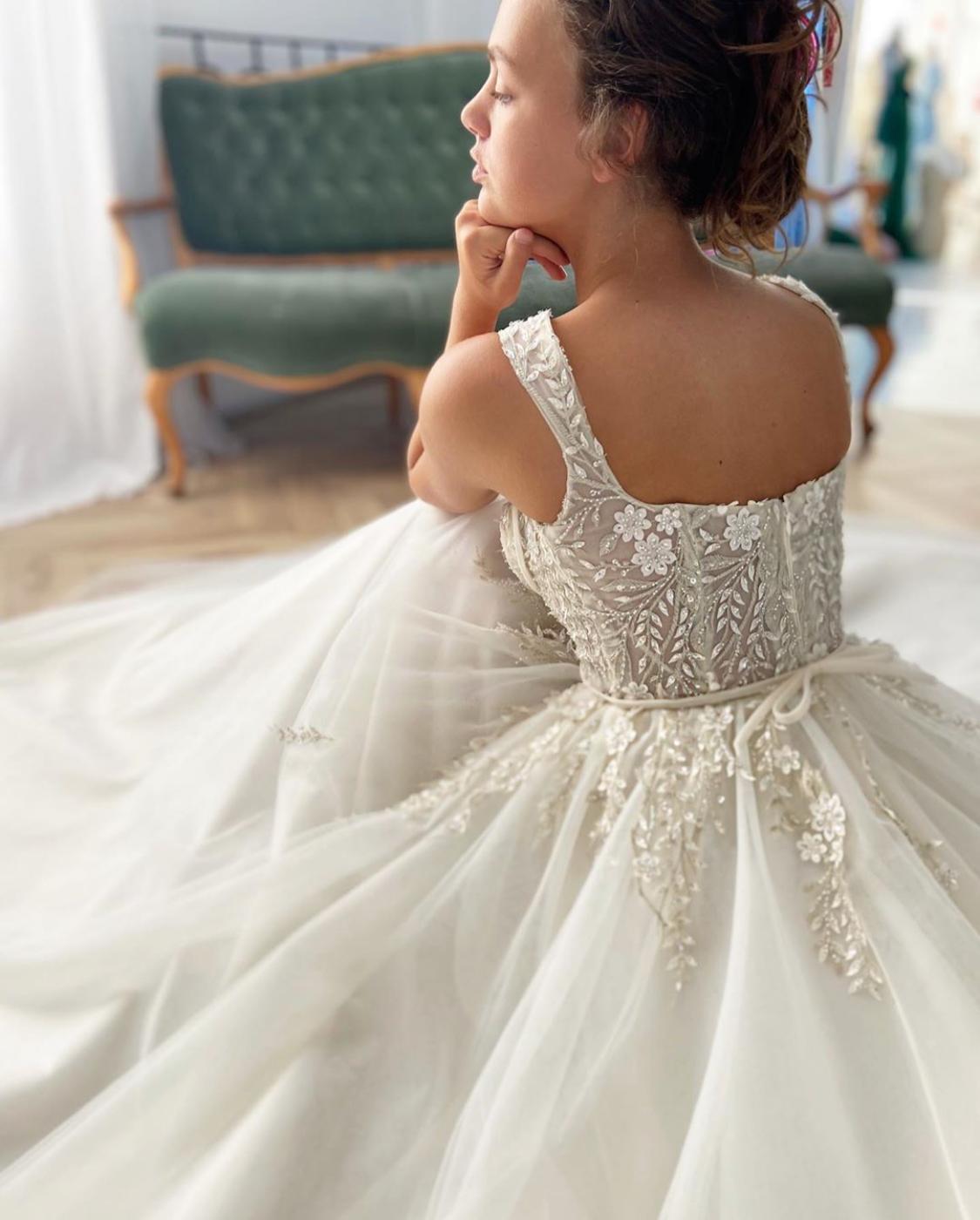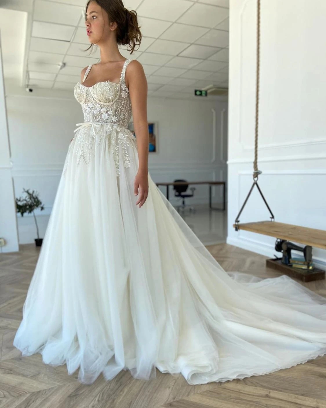Princess A-Line Sweetheart Ivory Tulle Wedding Dresses with Lace Appliques