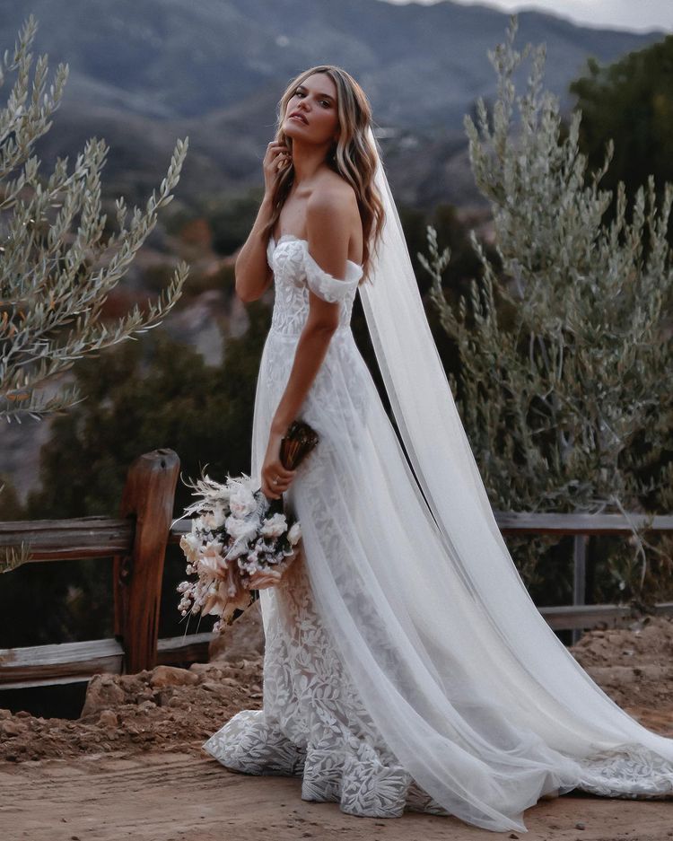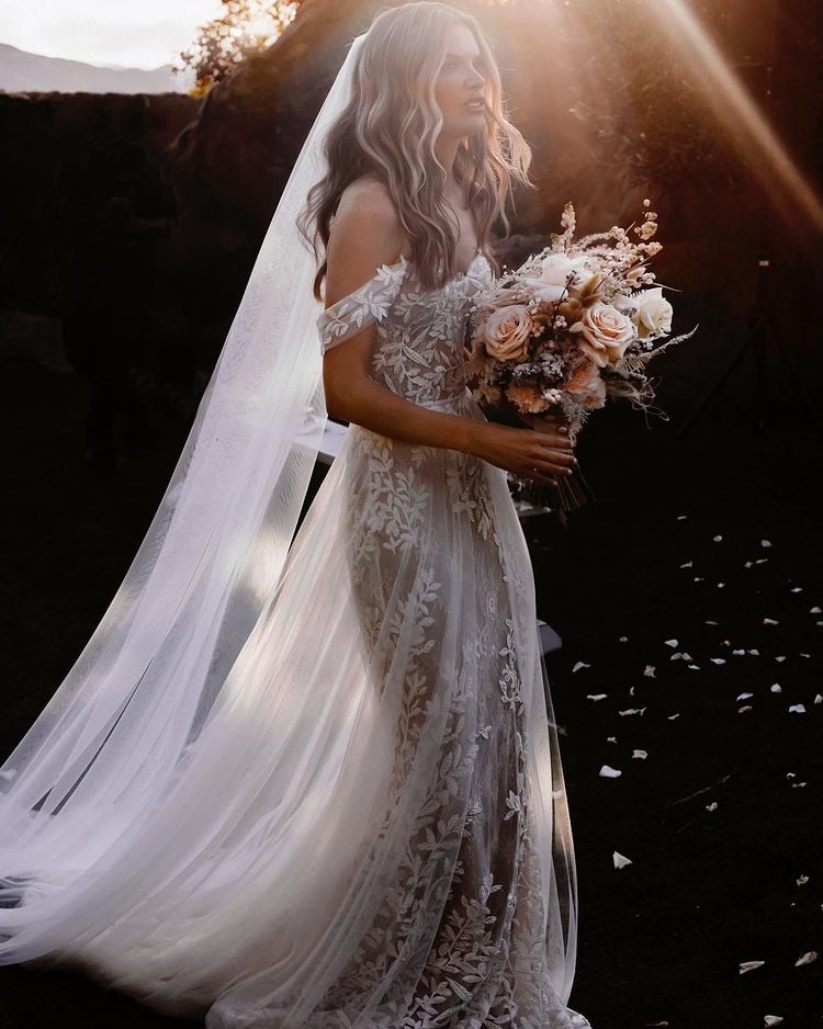 Features:Gorgeous Mermaid Off the Shoulder Lace Boho Wedding Dresses 2022