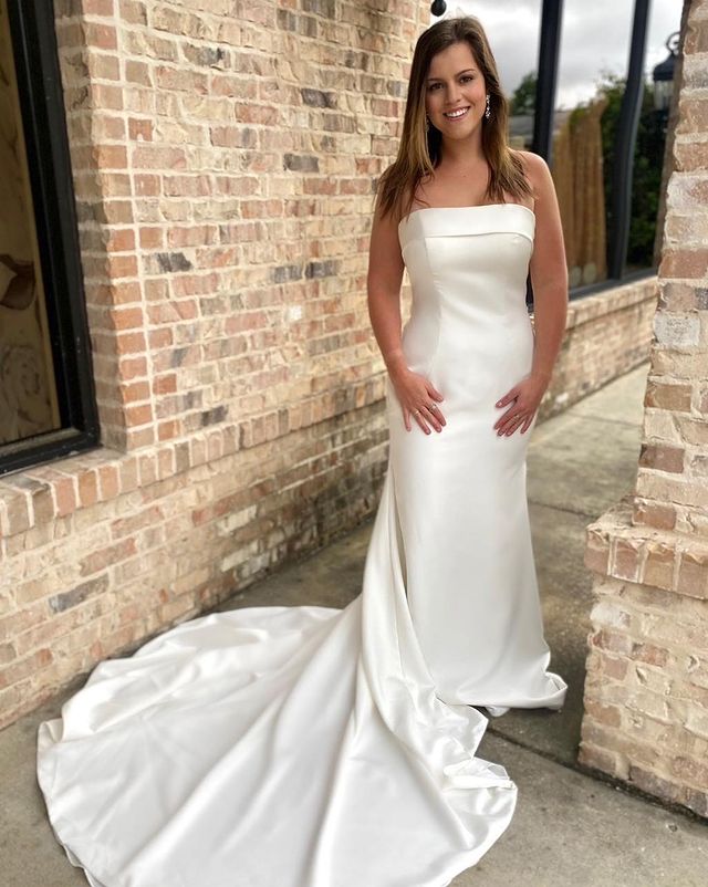 Elegant Mermaid Strapless Satin Long Wedding Dress with Bow