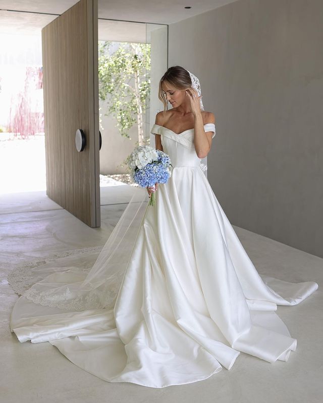 Ball Gown Off the Shoulder White Satin Long Wedding Dresses