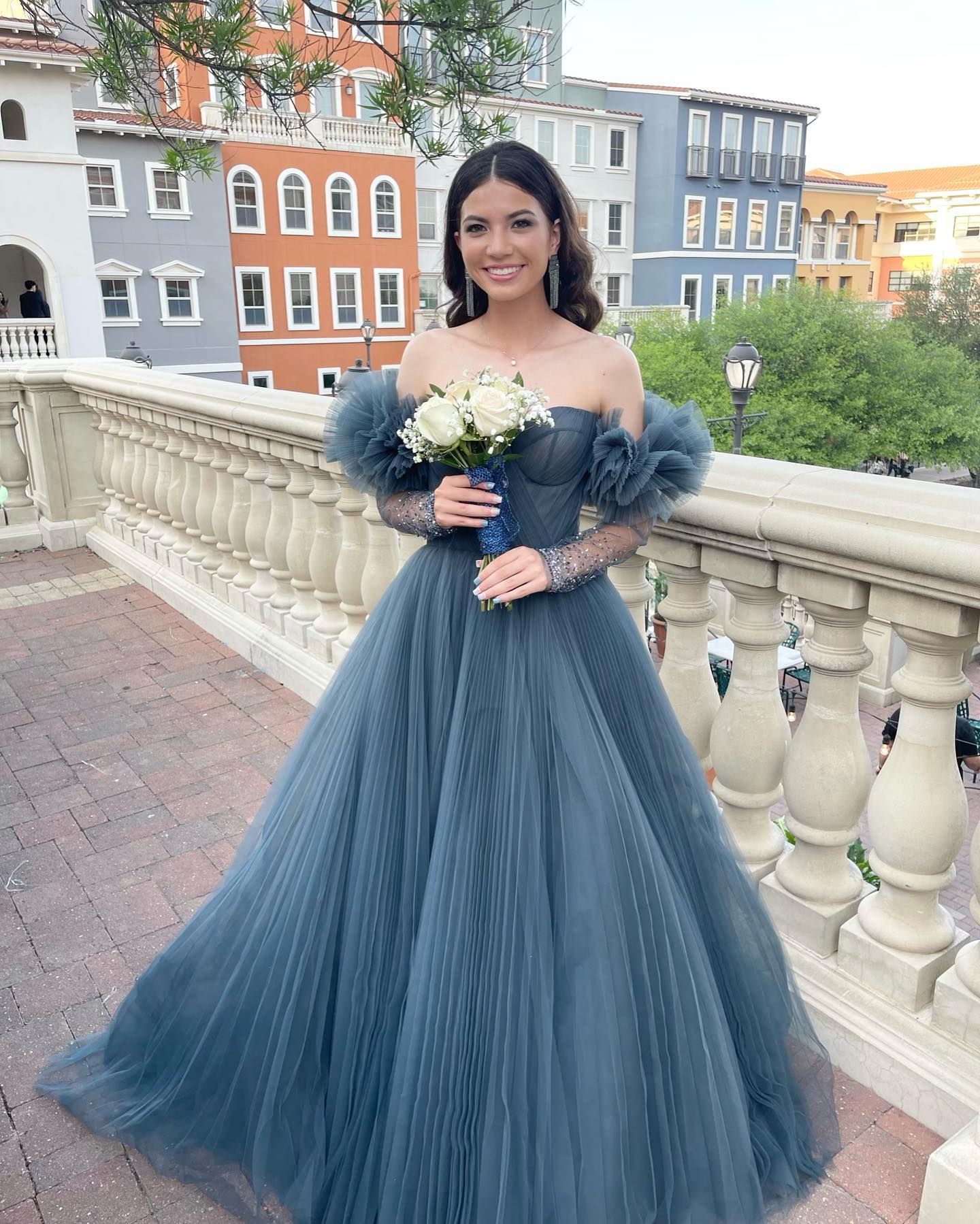 Fairy Ball Gown Off the Shoulder Dusty Blue wedding Dresses