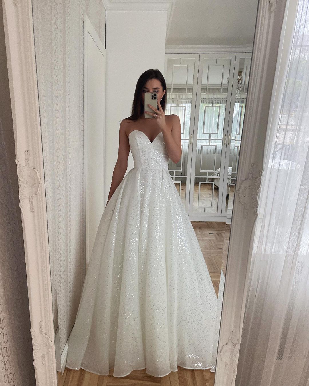 Sparkly Ball Gown Sweetheart Sequins Tulle Wedding Dresses