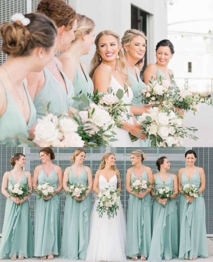 A-Line Halter Chiffon Long Spring Bridesmaid Dresses