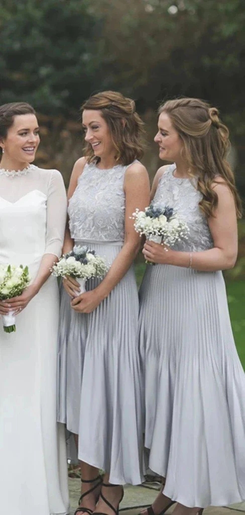 Jewel Lace Bodice Pleated High Low Bridesmaid Dresses High Low, Cheap Bridesmaids Dresses