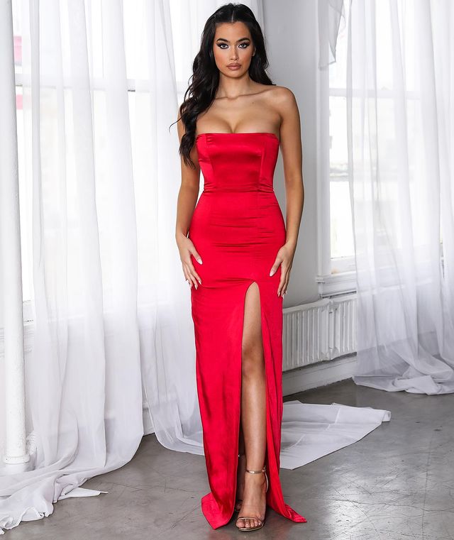 Features:Mermaid Strapless Red Prom Dress Evening Gown