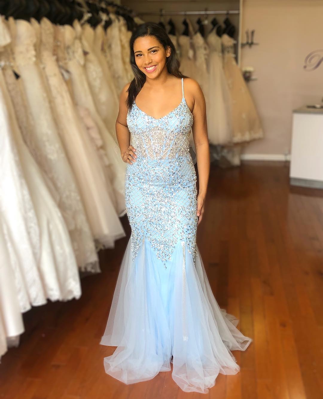 Features:Blue Beaded Long Prom Evening Party Dresses