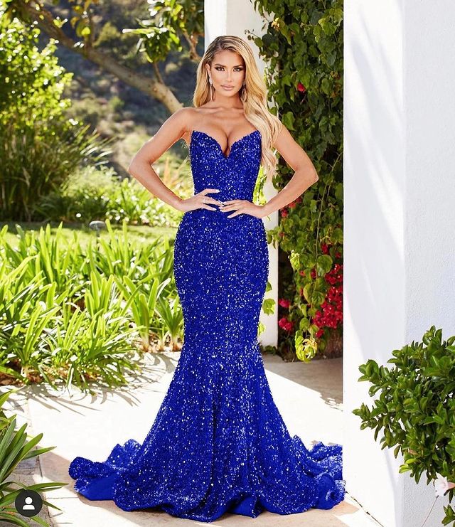 Sparkly Mermaid Strapless Royal Blue Sequins Long Prom Evening Dresses