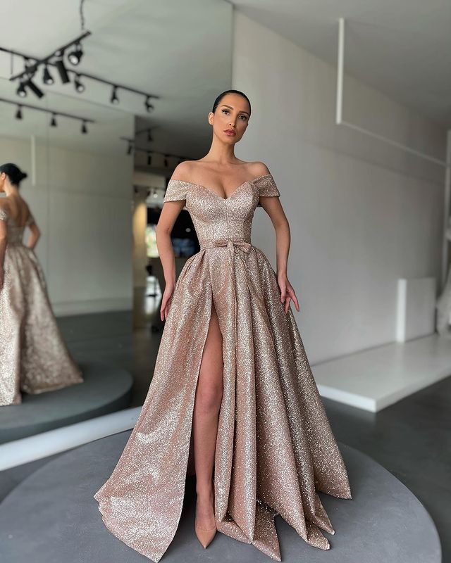 Features:Off the Shoulder Sequins Prom Evening Dresses
