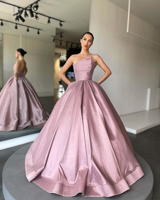 Stunning Ball Gown Strapless Blush Pink Satin Long Prom Dresses ,Formal Evening Party Dresses