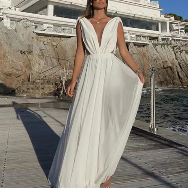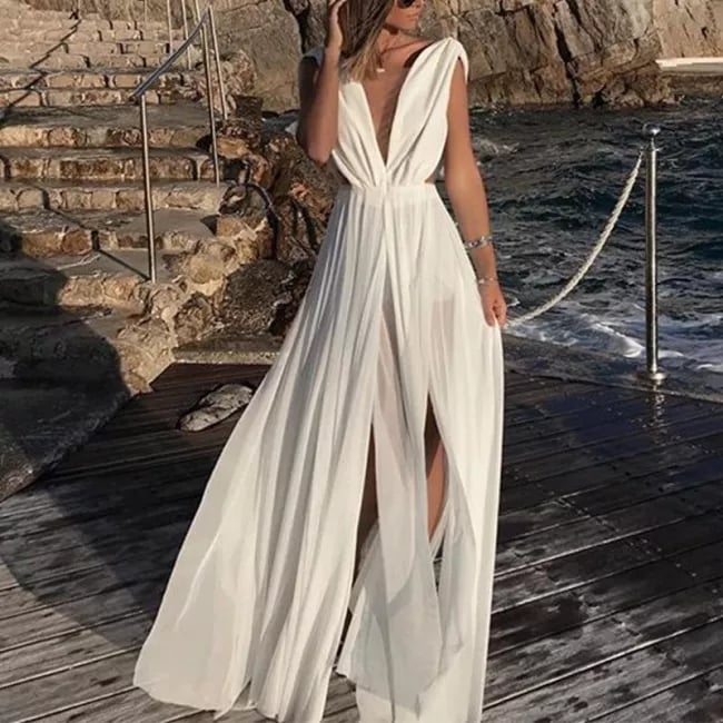 Sexy A-Line V Neck Chiffon Long Prom Evening Dresses with Slits
