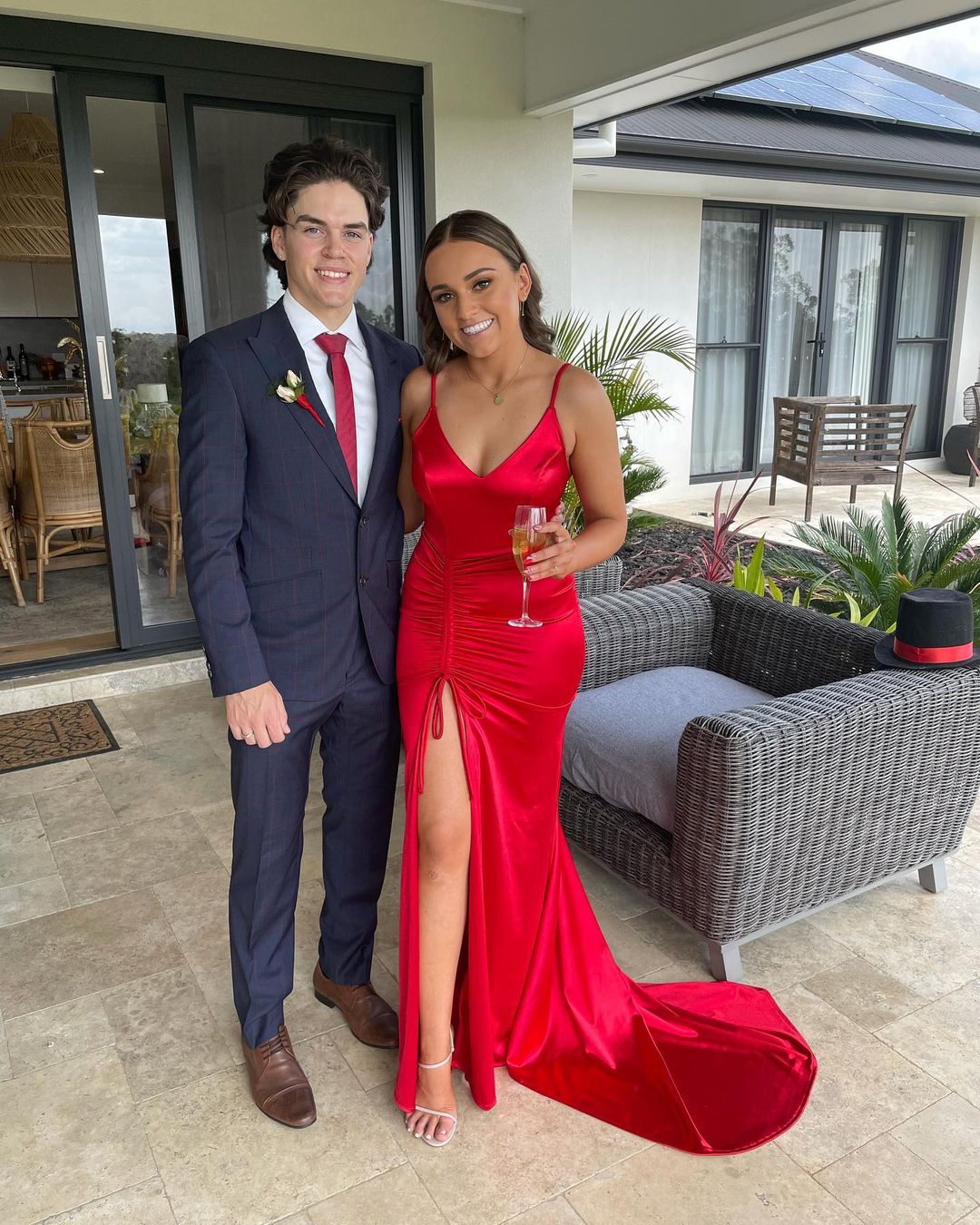 Features:Mermaid Red Satin Long Prom Evening Party Dresses