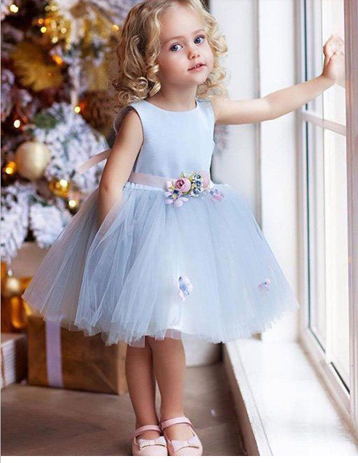 Features:Pretty Baby Blue Flower Girl Birthday Dresses