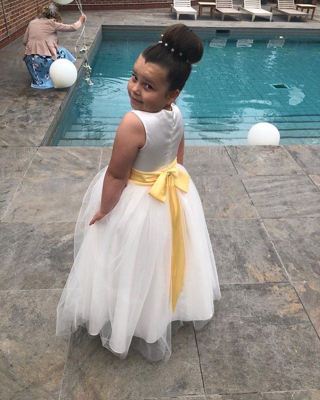 Cute White Satin Flower Girl Dresses with Yellow Belt