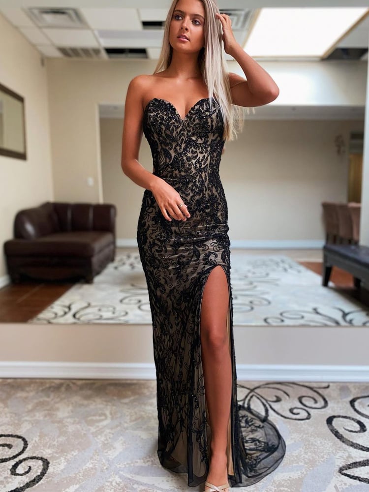 Features: Beading Mermaid Slit Prom Dresses