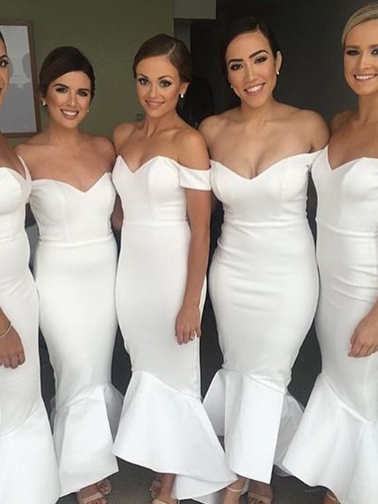 Elegant Sheath Off the Shoulder White Bridesmaid Dresses Under 100