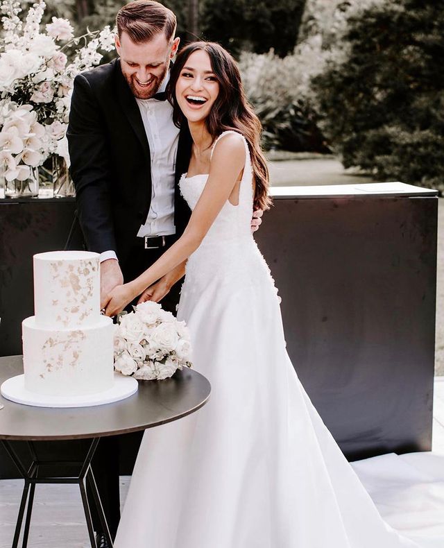 Exquisite A-Line Square Neck Satin Appliques Wedding Dresses