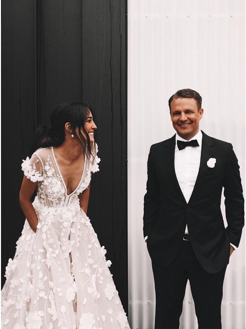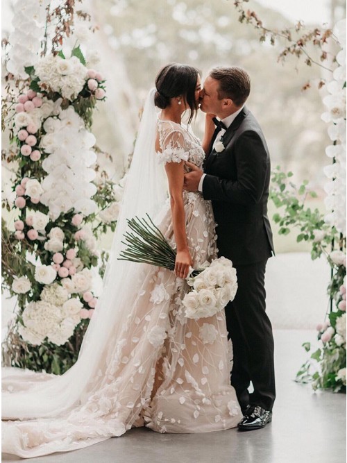 Features:Modest Cap Sleeves Lace Wedding Dresses