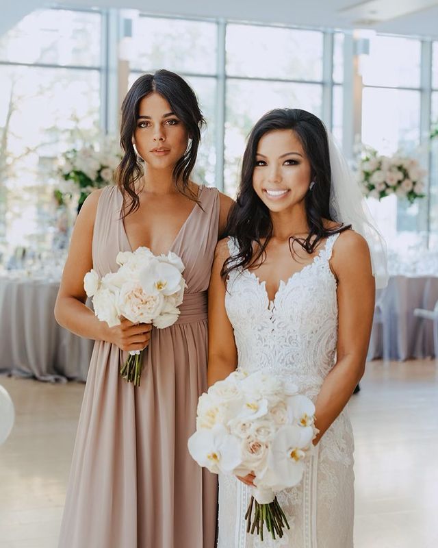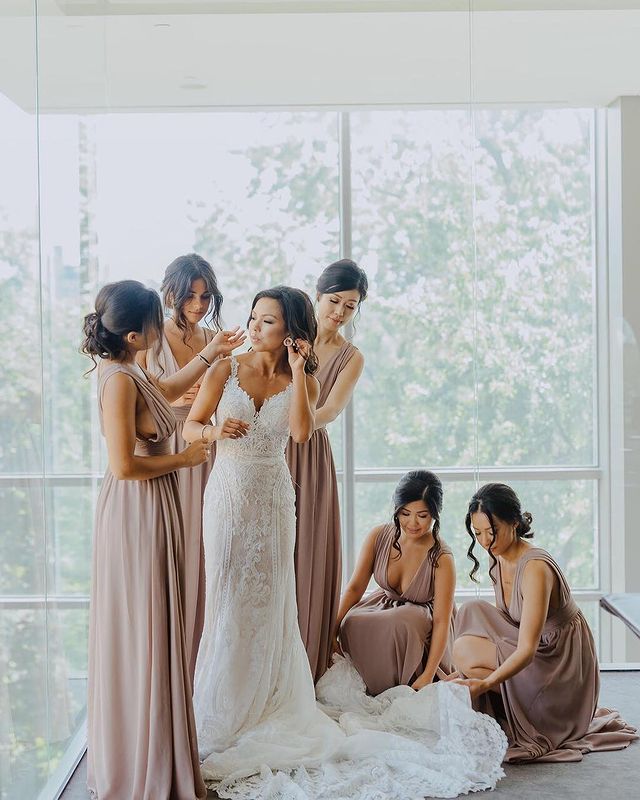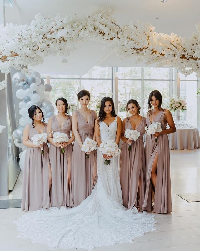 Features: V Neck Slit Bridesmaid Dress