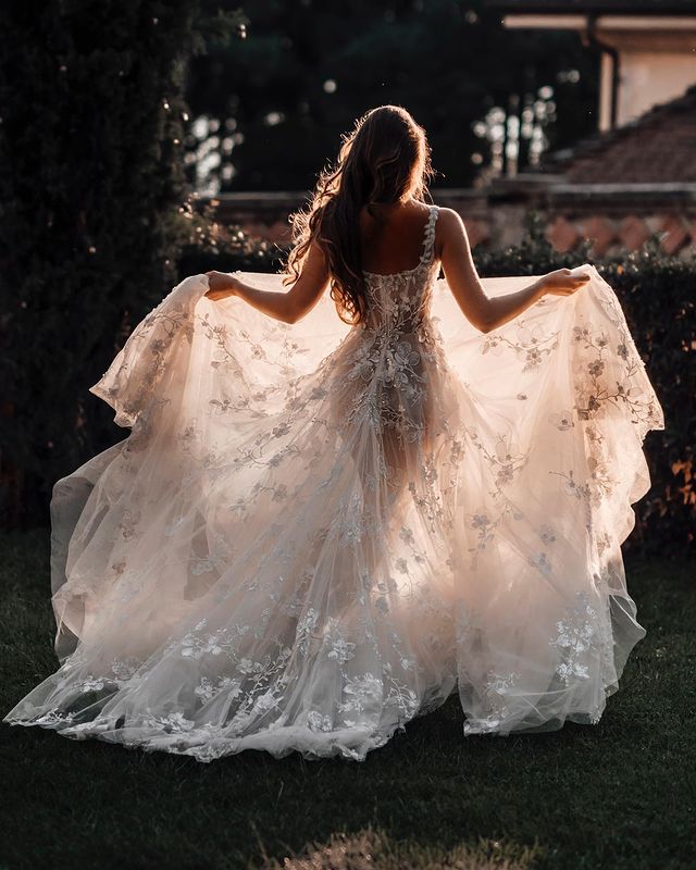 Romantic Lace Wedding Dresses, Scoop Neck Lace Wedding Gowns