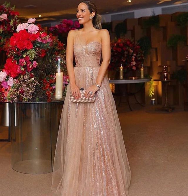Features: One Shoulder Champagne Tulle Prom Dresses