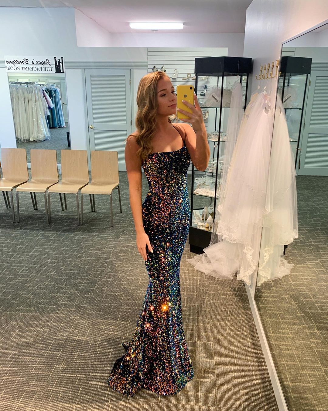Features: Glitter Mermaid Sequins Long Prom Evening Dresses 2021