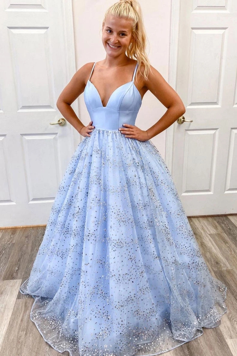 Sky Blue Satin Tulle Long Formal Prom Dress Evening Party Dress 2021