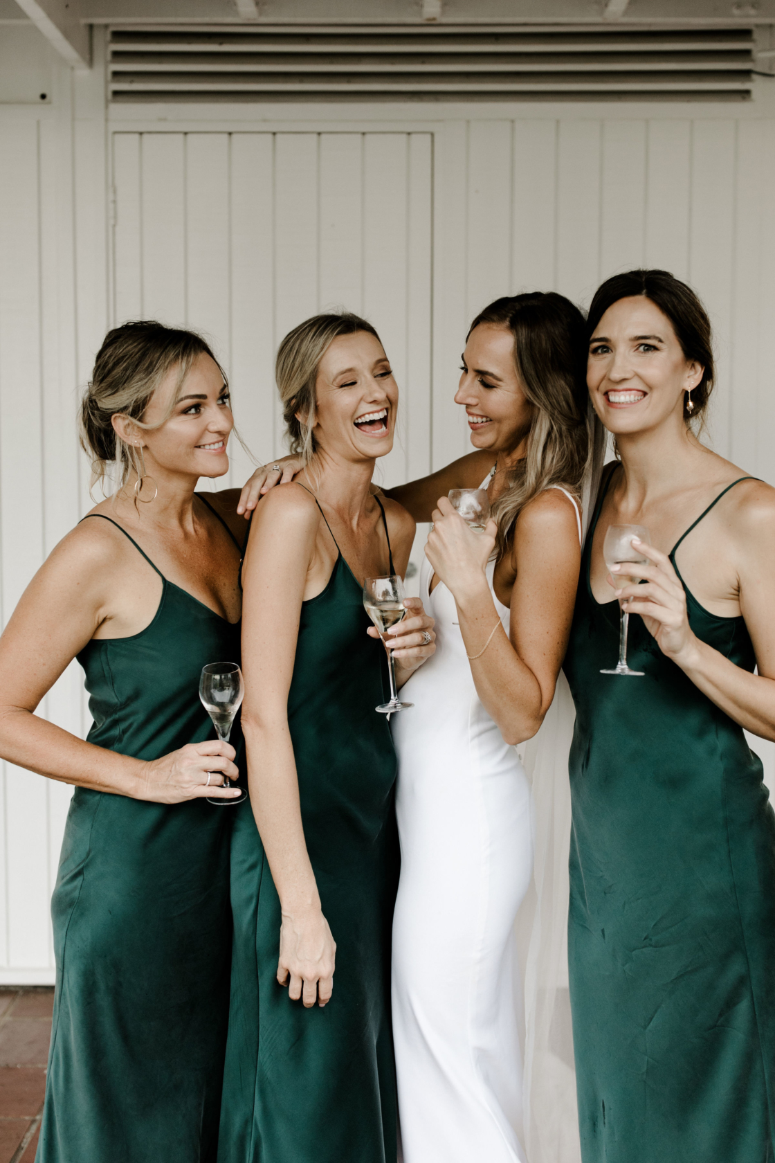 Beautiful Sheath Hunter Green Silk Satin Midi Length Bridesmaid Dress