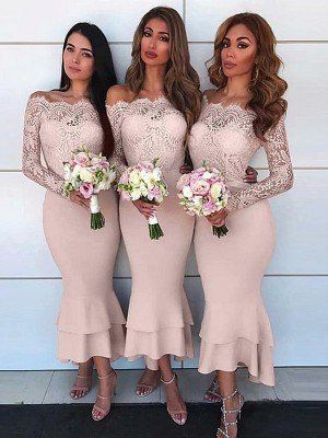 Features:Sexy Off the Shoulder Long Sleeve Bridesmaid Dress